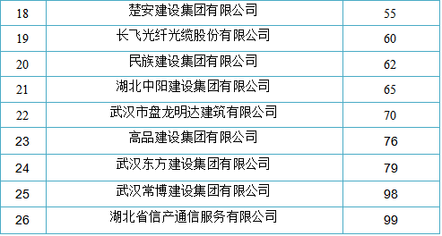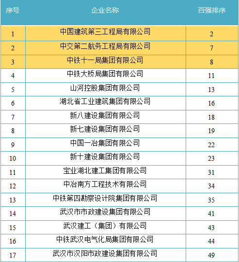 8月23日,2021年武汉企业100强榜单正式发布。武汉建筑业协会26家会员单位榜上有名,其中中国建筑第三工程局有限公司、中交第二航务工程局有限公司、中铁十一局集团有限公司跻身百强榜前10位,新晋2家为武汉市市政建设集团有限公司、武汉常博建设集团有限公司。