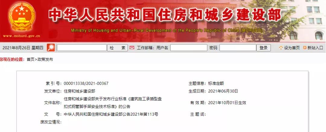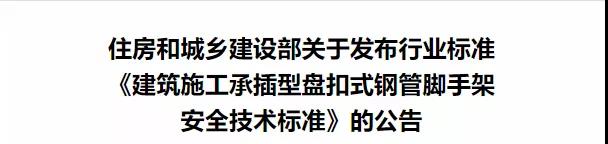 住建部印发承插型盘扣式钢管脚手架安全技术新标准!10月1日起正式实施!