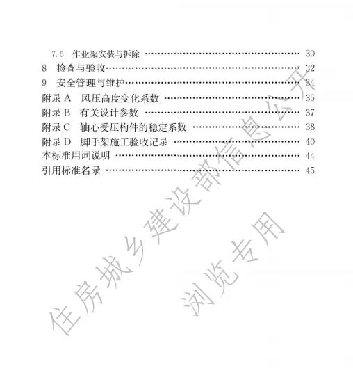 适用范围:本标准适用于建筑与市政工程中承插型盘扣式钢管脚手架的设计、安装与拆除、使用和管理。