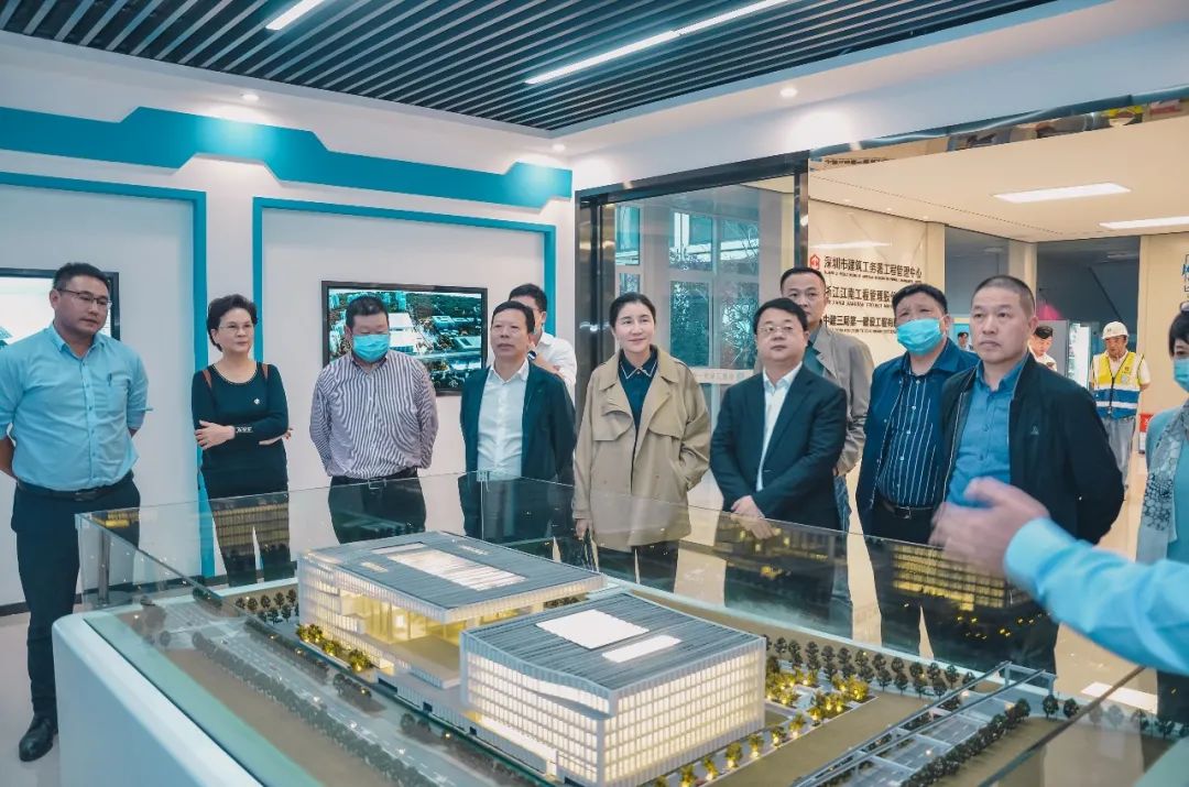 在深圳美术馆新馆和第二图书馆工程,考察团观摩智慧体验馆,并深度了解项目团队运用数智建造平台实时监控各分部、分项工程进度,及各类施工材料消耗情况。