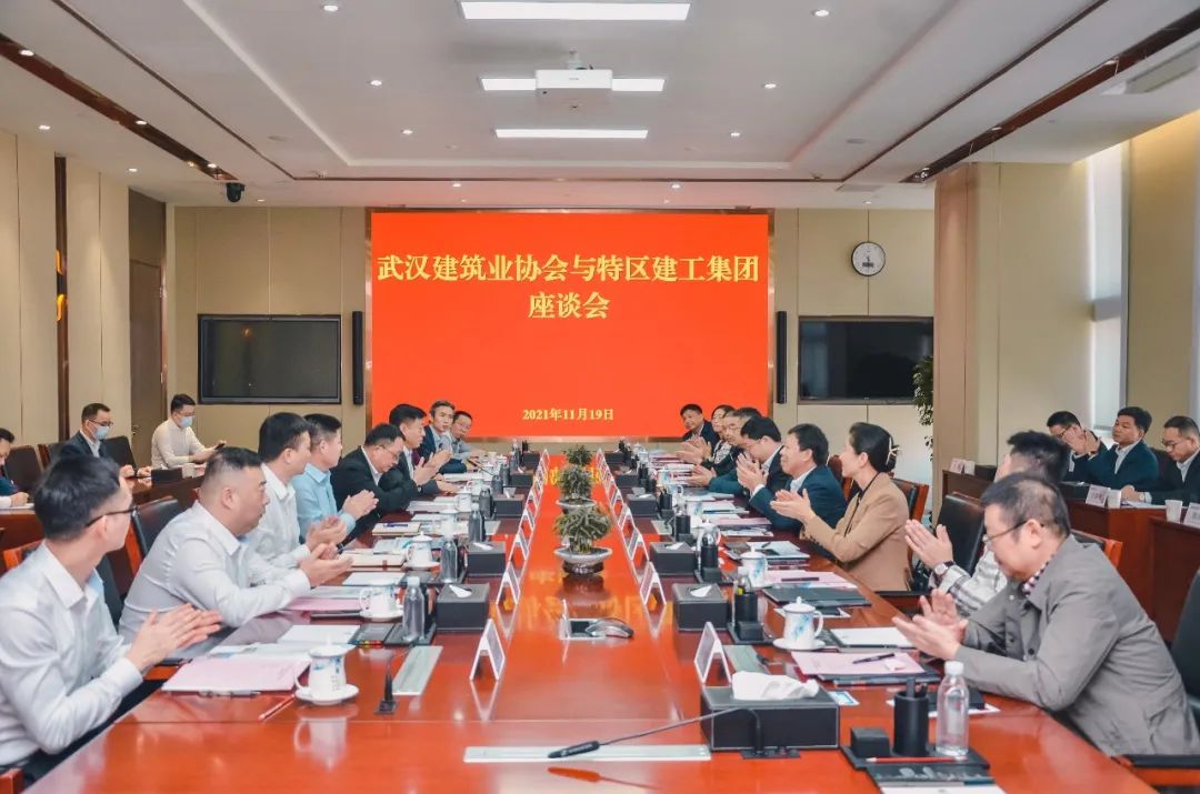 11月19日,考察团一行来到深圳市特区建工集团进行座谈交流。深圳市特区建工集团党委书记、董事长韩德宏,副总裁兼深圳建筑业协会会长尹剑辉,武汉建筑业协会副会长刘庆,秘书长李红青,湖北工建集团党委书记、董事长刘光辉,湖北广盛集团董事长匡玲及深、汉两地建筑业协会会员单位代表参加座谈交流。