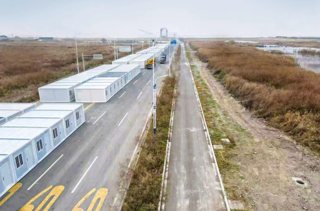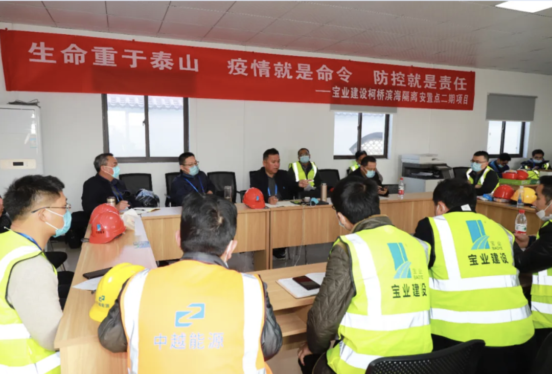 连日来 浙江绍兴疫情防控形式严峻 多地抢建疫情防控隔离点 疫情就是命令,防控就是责任 援建刻不容缓 协会会员企业冲锋在前 彰显大企担当 中建三局 12月11日 中建三局华东公司接到 上虞区华通体育馆隔离点 上虞区盖北镇进港公路隔离点 和越城区越西路隔离点任务 公司召开紧急部署会 成立工作领导小组 第一时间组建团队奔赴一线 越城区越西路隔离点位于越西路东侧,南侧、东侧紧邻上官渡,总占地面积约4.2万平方米,共设置房间1303间,其中单人隔离房1270间,附属用房33间。15日上午10点半,场平基本完成,垫层浇筑完成70%,集装箱进场吊装50个,线路铺设、水电安装同步穿插进行。 上虞华通体育场隔离点(2区、5区)位于绍兴市上虞区百官街道观山路,总建筑面积约2.9万平方米,可容纳约831人。 12日,华通体育馆隔离点5区完成箱体摆放236间,13日,临时通知增加51间,至15日,完成5区所有287间施工。目前已开始施工2区,预计将于16日完成544间建设任务。 盖北镇进港公路隔离点位于盖北镇进港公路,共4公里长,占地约9600平方米,建成后可容纳约2000人。至14日下午,该隔离点完成213间集装箱摆放。15日下午,完成1200间集装箱摆放,内部装修正同步施工中。预计将于十日内完成全部建设任务。 宝业集团 12月12日下午,宝业集团接到柯桥区委区政府下达的柯桥区滨海隔离安置点二期项目建设任务后,第一时间开展项目团队集结和材料准备工作。 柯桥滨海隔离安置点二期项目分为新建和改造两部分。宝业集团承担了建筑面积80227平方米的新建任务,共62幢隔离楼,合计3862间隔离房及配套用房。 600余名管理人员和施工人员迅速就位,采取两班倒工作制,不畏严寒、夜以继日。施工现场灯火通明,工作人员各司其职,工程设备彻夜轰鸣,一夜之间,地面硬化、材料吊卸、板房搭建。截至12月15日中午,已完成混凝土浇筑1.5万方、搭建隔离房500间。