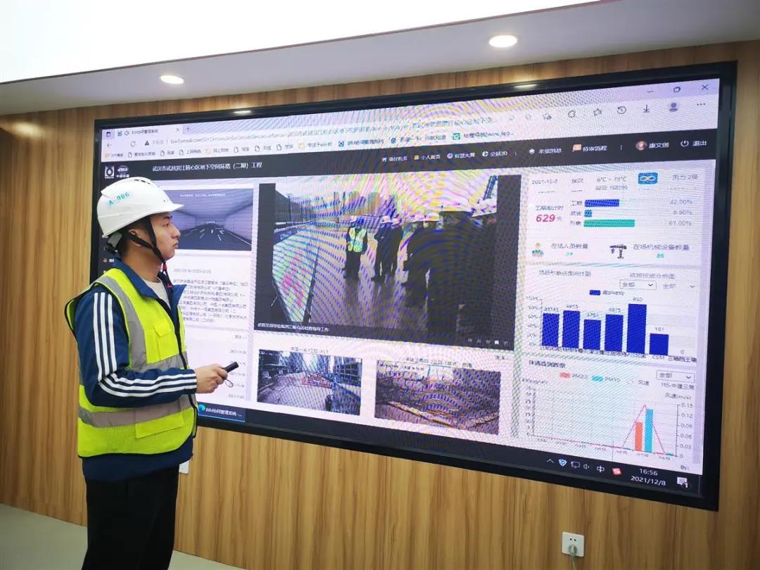 已进入地下结构施工阶段的中建三局武昌滨江核心区地下空间环路(二期)工程EPC一标段项目,可谓“大腹便便”,其南至武车一路、北至徐家棚大街以北,建设内容包括3公里主线及匝道,19个地块车库接口,串联2.3万个停车泊位,有13条匝道连接地面市政道路,建成后,将串联起周边大型商圈、住宅、公共人行步道和停车场,是一个名副其实的交通“大根系”。2月8日,记者来到位于临江大道与和平大道之间的该项目,感受智慧化建造带来的新体验。