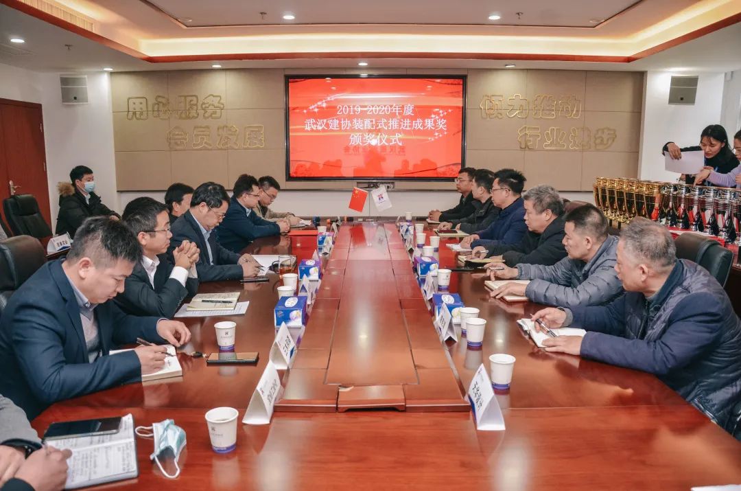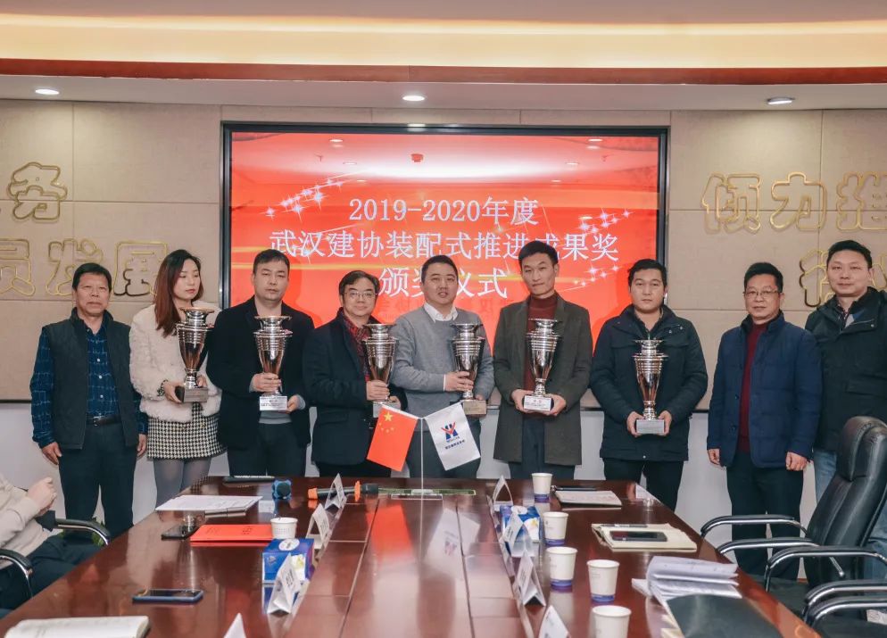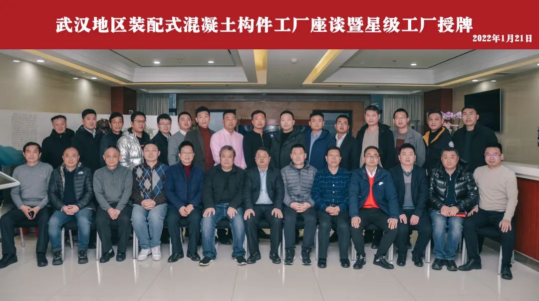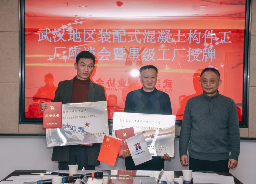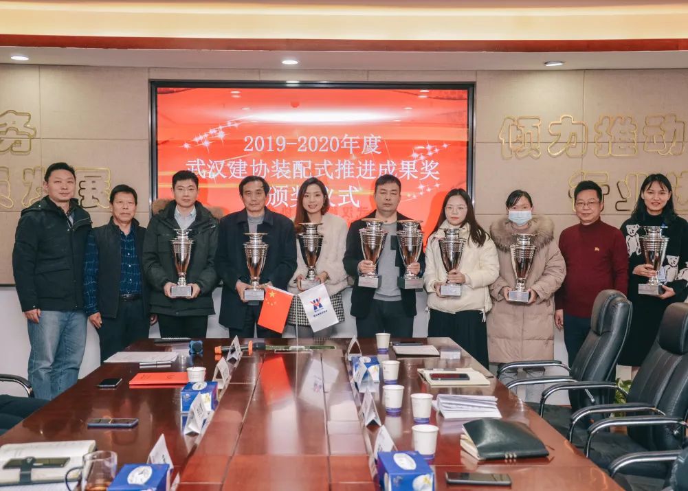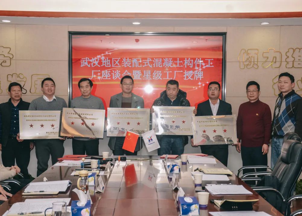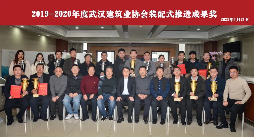 1月21日下午,武汉建筑业协会装配式建筑分会举行2019-2020年度武汉建筑业协会装配式推进成果奖、武汉地区装配式混凝土构件工厂星级工厂颁奖授牌仪式暨座谈会。武汉市住建局节能处处长杨建春,市节能办主任肖孟、副主任童明德、张凯,武汉建筑业协会副会长(法人代表)刘庆、秘书长李红青等领导参会指导。 协会领导致辞 李红青为本次活动致辞,他对参会指导的政府部门领导表示感谢,对全体参会单位代表的到来表示欢迎,同时对本次座谈能够切实解决行业问题寄予期待,并提前为大家送上春节祝愿。 颁奖授牌 参会领导为武汉市第四届装配式推进成果奖获奖单位颁奖。 本次成果奖在坚持地区产业现代化先进水平的要求,及推进创新、公开、公正、公平的原则下,加大了成果应用效果评审权重。中建科工集团武汉有限公司《钢结构装配式高层住宅设计与建造一体化技术》等7项成果获评金奖,中铁建设集团有限公司《恒大时代新城一期E3地块装配式施工应用》等14项成果获评银奖。