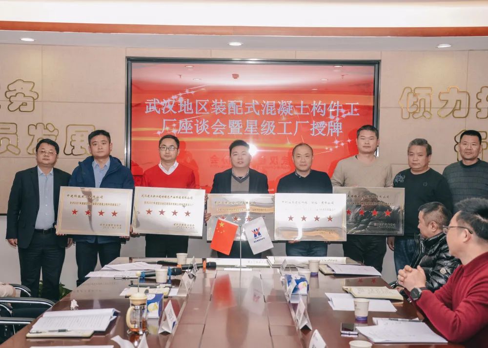 参会领导为武汉地区装配式混凝土构件生产基地星级工厂授牌。