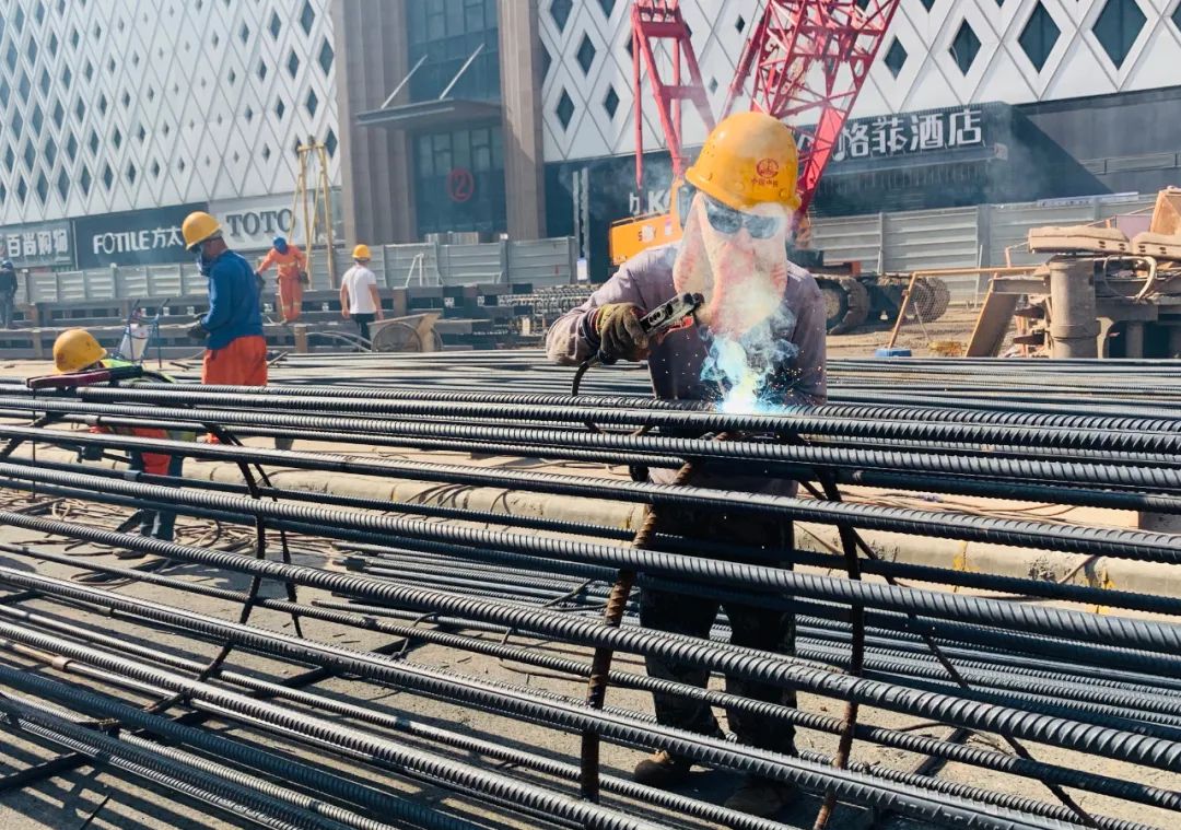 上午9时,记者来到12号线四新南路站施工现场,这里位于汉阳区江城大道与四新南路交叉路口,车站沿四新南路敷设。施工人员正在焊接钢筋笼、立柱桩,现场挖掘机、打桩机、成槽机、履带吊车等机械忙碌不停。