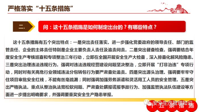 2.推动落实《安全生产十五条硬措施》