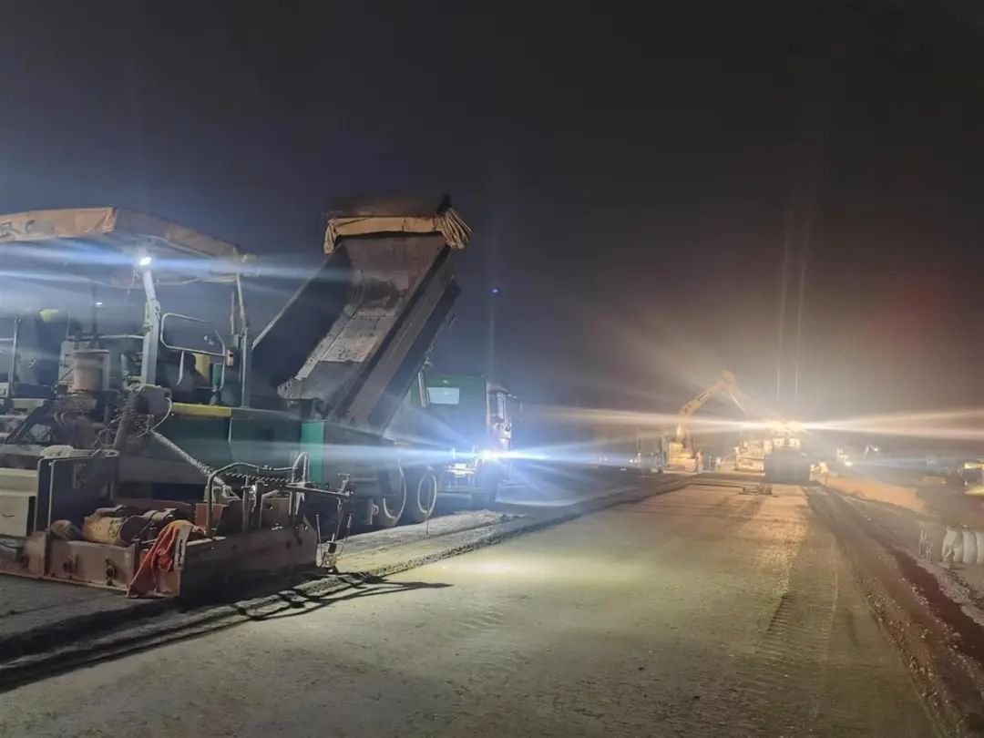 本次攻坚的高新六路(未来一路—鄂州段)北侧水稳基层施工,全长1023米。项目技术总监凡锋涛表示:“每年5月到8月是武汉雨季,天气预报5月10日有新一轮降雨,为保障项目整体施工目标,项目趁着天气晴好,调集大量机械设备,包括挖机15台、压路机5台、平地机2台、自卸汽车40辆等,连夜赶工顺利完成水稳摊铺。”