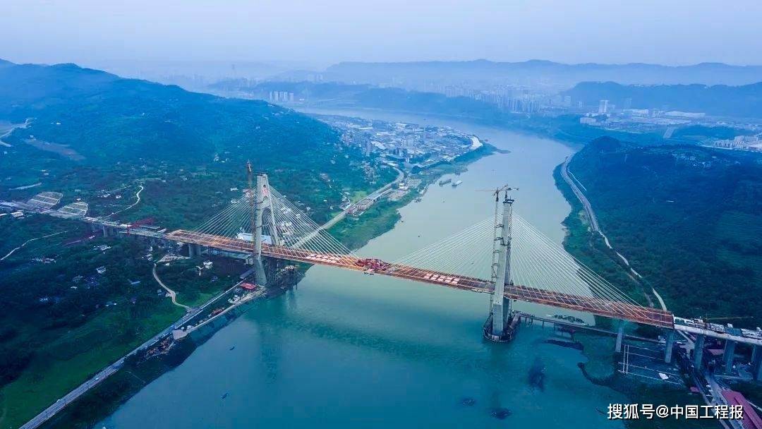 过程中,为克服长江上游无法适用大型水上起重设备辅助导梁、架梁吊机等困难,中铁大桥局施工人员研发了适用于塔吊安装的多功能导梁,该导梁既具有一般导梁的功能,还作为架梁吊机的安装走行和钢梁吊装平台,使得钢梁架设全程无需浮吊辅助,提高了施工效益。另外,开展了“平层宽截面钢箱梁拼装线形控制及合拢技术措施”研究,突出对宽截面钢箱梁在施工过程中的匹配对位控制措施和主梁合拢控制措施问题解决,研发了基于BIM平台的关键工序可视化动态监测系统,基于主梁虚拟拼装的线形和起吊姿态控制极大降低钢梁吊装安全风险,确保了大桥钢梁顺利架设。