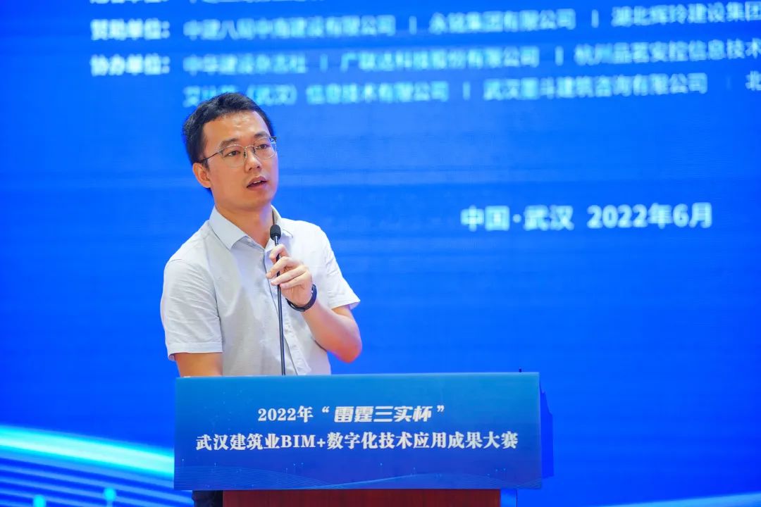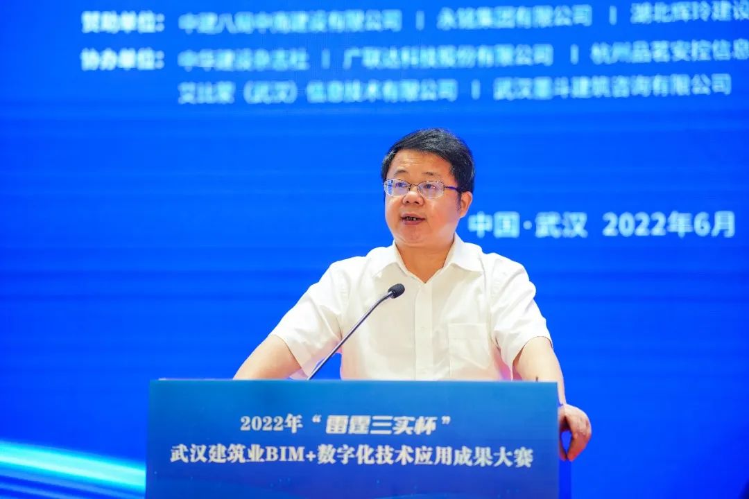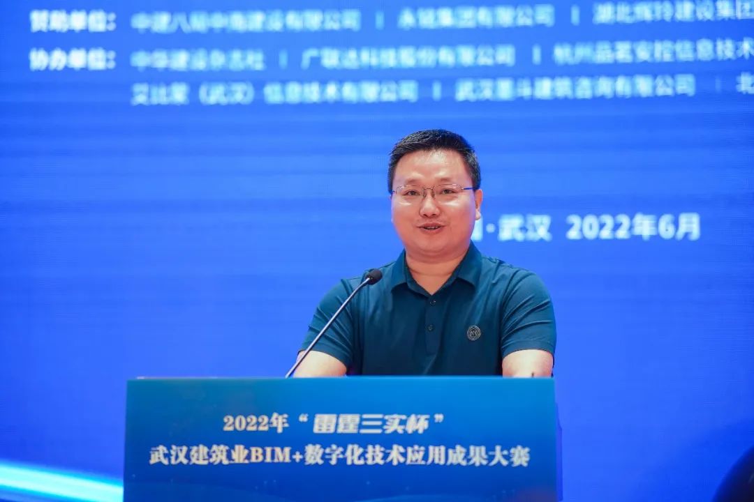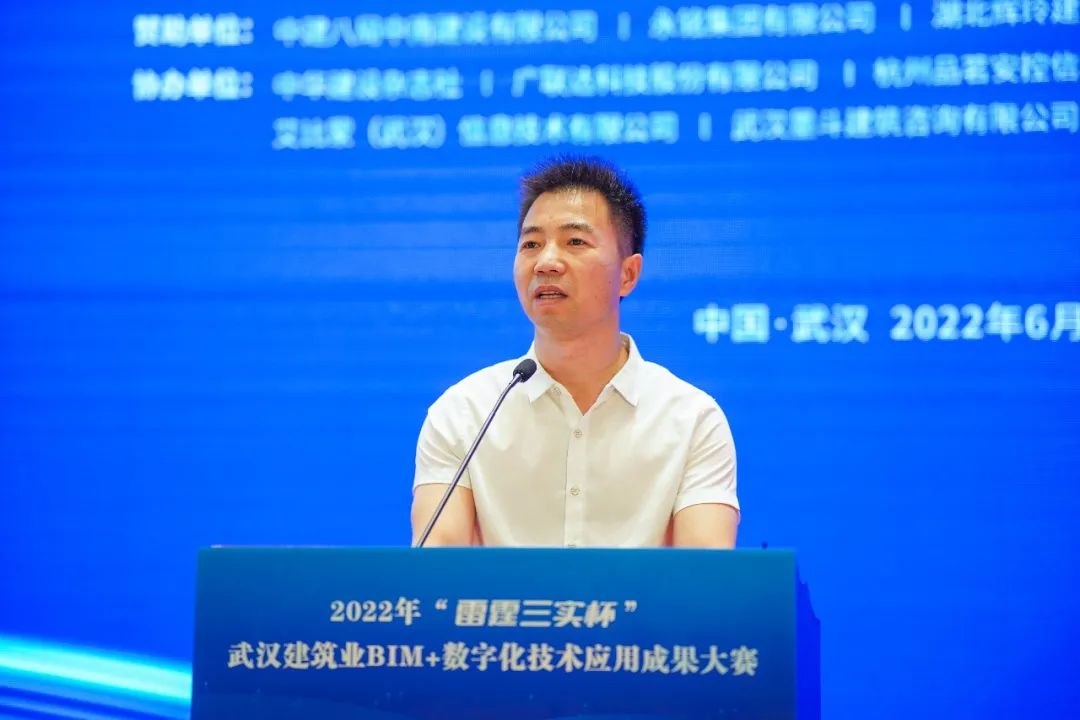武汉建筑业协会质量管理委员会副主任兼秘书长陈钢对《2022年“雷霆三实杯”武汉建筑业BIM+数字化应用成果大赛》进行宣贯。