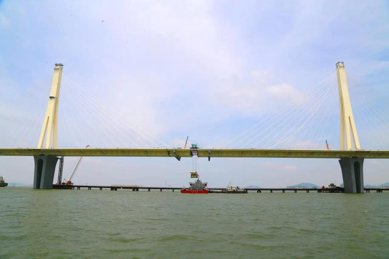 粤港澳大湾区重点工程—珠机城际金海大桥主跨合龙