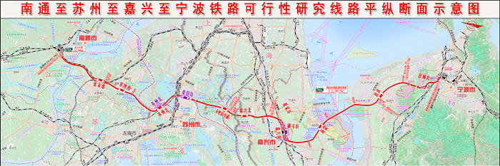 项目位于长三角城市群中心的江苏省东南部和浙江省东北部地区,为南北向铁路,线路起自南通市南通西站,与盐通铁路正线贯通,向南跨过长江后(利用沪通四线桥),经苏州市、嘉兴市、以桥梁形式跨过杭州湾进入宁波市。