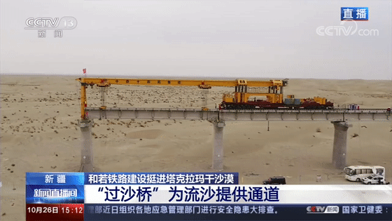 ▲2022年6月16日,中铁大桥局参建的和若铁路开通运营,世界首条沙漠铁路环线形成。