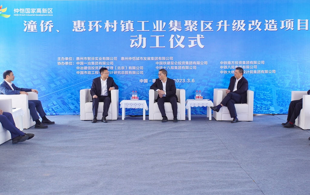 3月6日,中国一冶承建的惠州潼侨光明村工业集聚区升级改造项目举行动工仪式。惠州仲恺高新区委书记吴献民,区委常委王云波,中国一冶党委书记、董事长陈阳等参加活动。