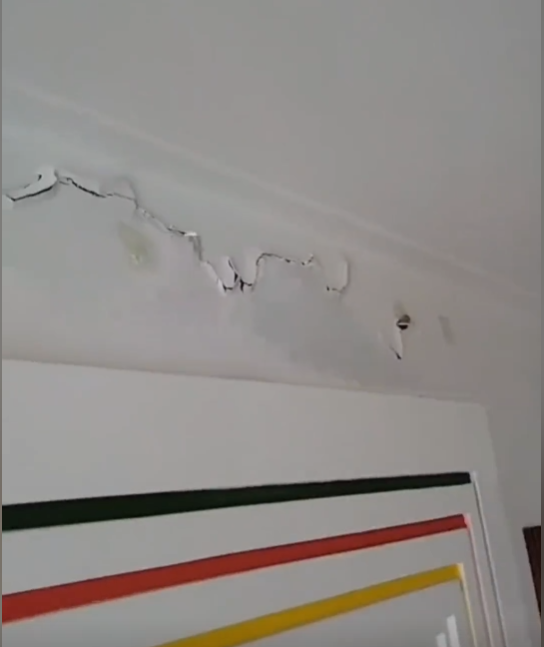 但有业主告诉记者,居民楼有31层,当天晚上就开裂到15层了,半夜疏散了业主。到了第二天下午,已经裂到了21层。还有业主晒出自家的开裂情况:墙皮脱落,醒目的缝隙分布在家里的围墙上。