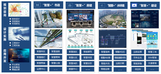 聚焦“智慧+”市政, “智慧+”房建,“智慧+”水环境解决方案,覆盖智慧街区、智慧道路、智慧交通、智慧管廊、智慧园区、智慧楼宇、智慧海绵等多个智慧城市细分领域。并在建设过程中提供“智慧+”建设增值服务,实现工程建设的科学化、精细化和智慧化,助力安全、文明、智慧、绿色的工程建设。