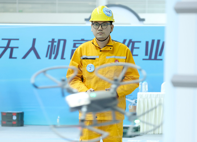 6月7日,参赛选手在无人机操作员项目的比赛中。