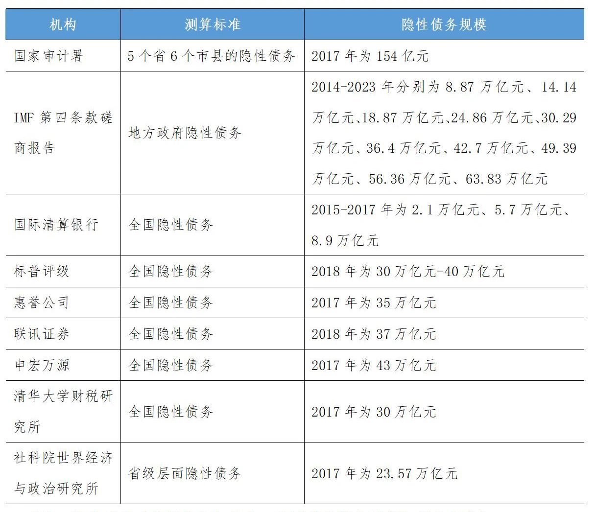 (注:该表摘自《统筹发展与安全:中国政府债务研究》部分内容)