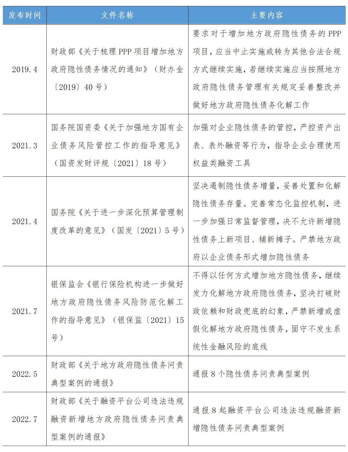 在新《预算法》实施的过渡阶段,地方政府不规范的通过PPP、政府购买服务等方式大量融资,新增了政府隐性债务。2017年7月,政治局会议提出了“要积极稳妥化解累积的地方政府债务风险,有效规范地方政府举债融资,坚决遏制隐性债务增量”。2018年8月,《关于防范化解地方政府隐性债务风险的意见》(中发〔2018〕27号)明确隐性债务范围,并在全国范围内开展隐性债务摸底统计,要求地方政府在5-10年内化解隐性债务。
