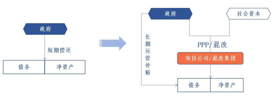 (2)对具备经营条件的政府隐性债务项目,可通过引入社会资本等方式,将其改造为社会资本的债务;