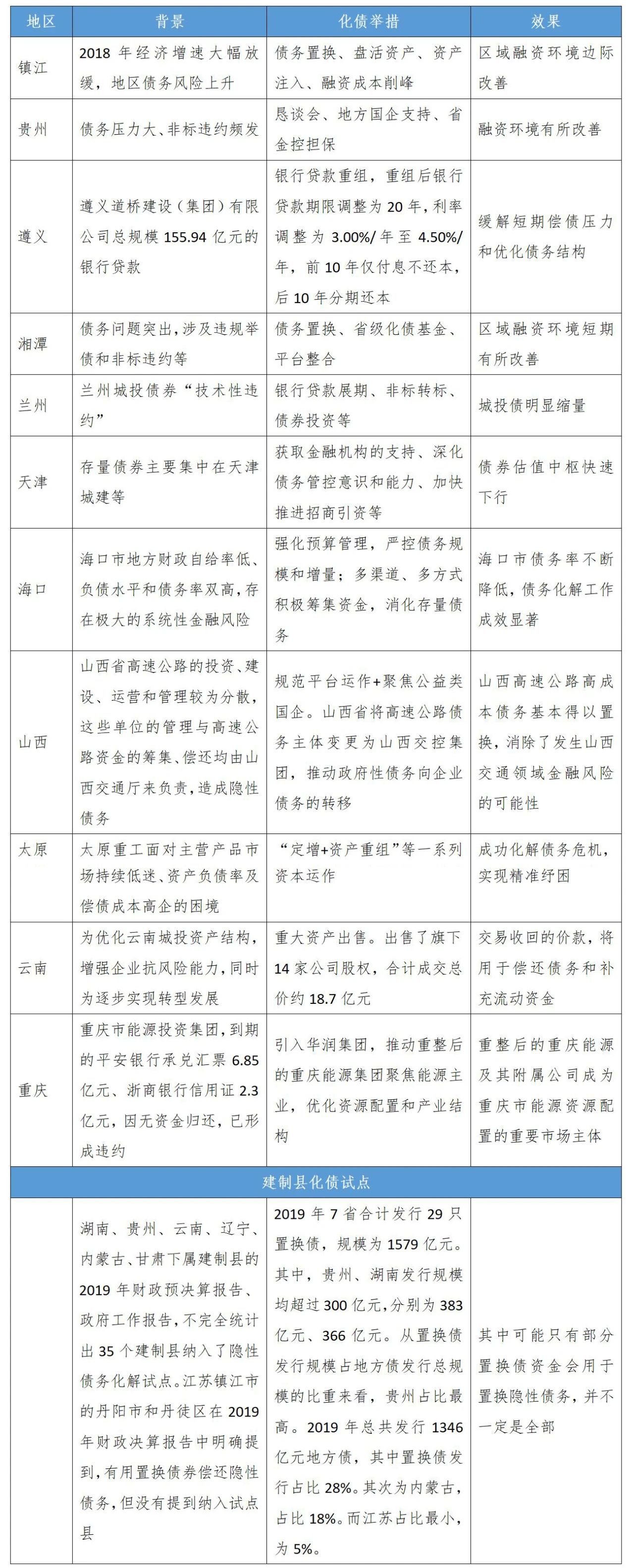 遵义道桥是债务置换展期的典型案例。在当地政府协调下,遵义最大的城投发债主体遵义道桥建设(集团)有限公司将银行贷款展期20年,前十年不还本、只付息,后十年逐步还本、同步利率也由4%-7%,降至约3%。