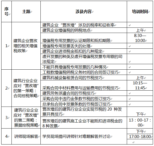 “营改增”是20年来国家税制改革的重大举措,2015年“营改增”将在各行业全面铺开。由于建筑市场的不规范及建筑行业自身特点,施工企业将面临“营改增”后税负上升、抵扣难等诸多问题。为帮助建筑企业解决“营改增”后出现的新问题,保证行业健康发展,努力把不利因素降到最低程度,协会拟邀财政部财政科学研究所博士后、中国著名税收筹划实战派专家肖太寿教授为会员企业举办一期“营改增”实务培训。