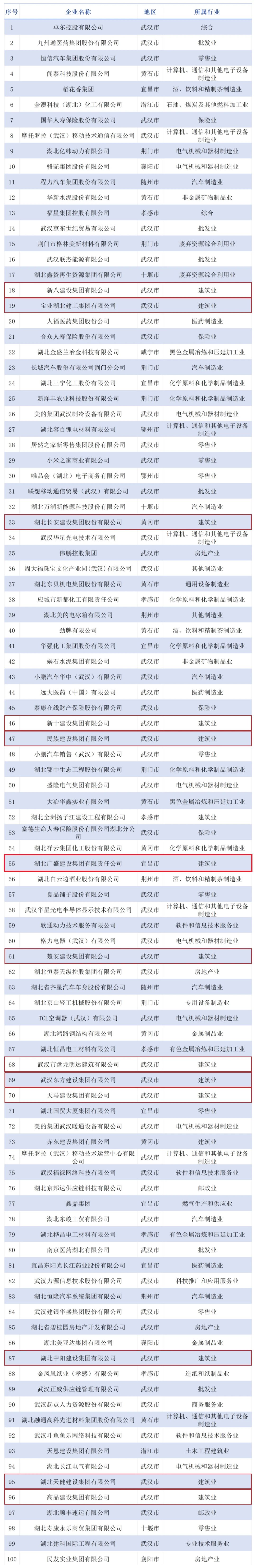 2024湖北民营企业百强榜单