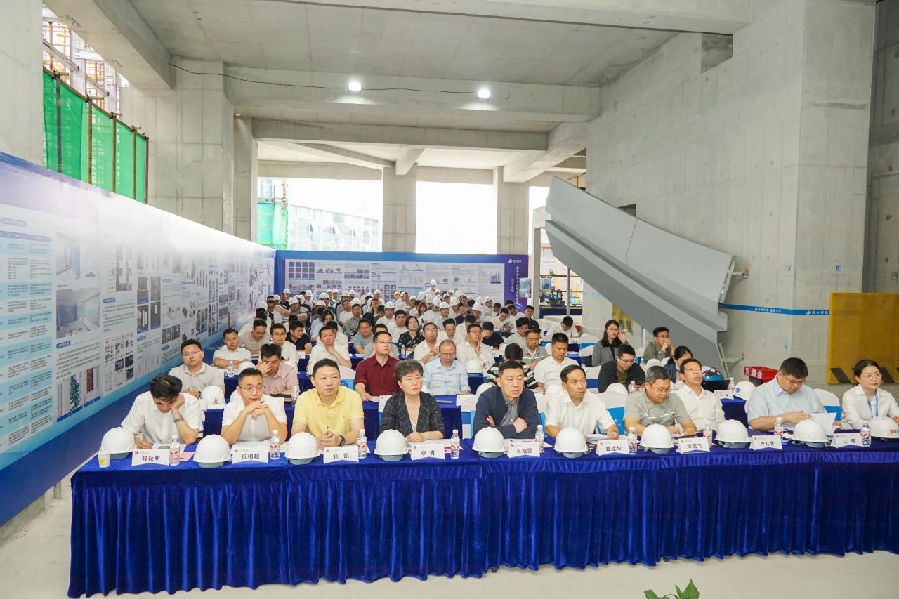 参会人员现场观摩了中天建设集团承建的新希望华中区域总部项目。该项目位于二七滨江商务区核心区,总建筑面积32万平方米,包含270米超高层A塔办公楼及高端住宅。