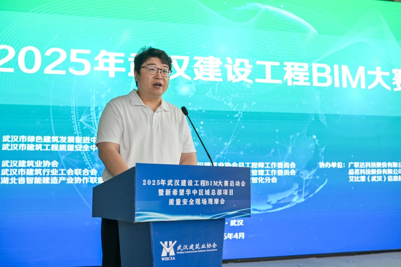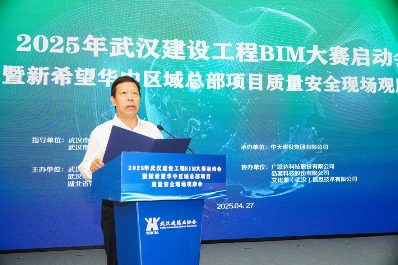 为深入贯彻落实住房和城乡建设部《关于印发“十四五”建筑业发展规划的通知》精神,推动智能建造与新型建筑工业化协同发展,培养更多优秀的智能建造专业人才,助力行业高质量发展。4月27日,由武汉建筑业协会、武汉建筑行业工会联合会、湖北省智能建造产业协作联盟联合主办,中天建设集团承办,广联达科技、品茗科技、艾比蒙信息技术公司协办的2025年武汉建设工程BIM大赛启动会暨新希望华中区域总部项目质量安全现场观摩会成功举办。