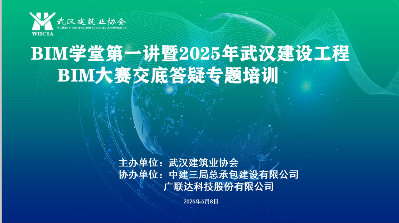 5月8日,由协会主办,中建三局总承包建设有限公司与广联达科技股份有限公司联合承办的2025年BIM学堂第一讲暨大赛交底答疑专题培训在线上成功举行,吸引400余名技术人员参与。