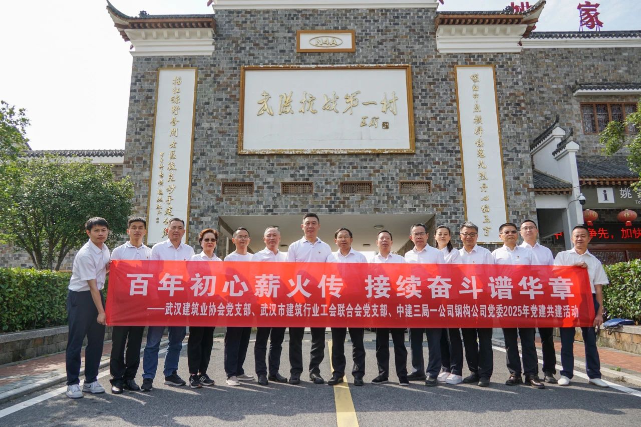5月23日,武汉建筑业协会党支部、武汉市建筑行业工会联合会党支部与中建三局一公司钢构公司党委联合赴黄陂区姚家山红色研学基地,开展“百年初心薪火传 接续奋斗谱华章”主题党建共建活动。
