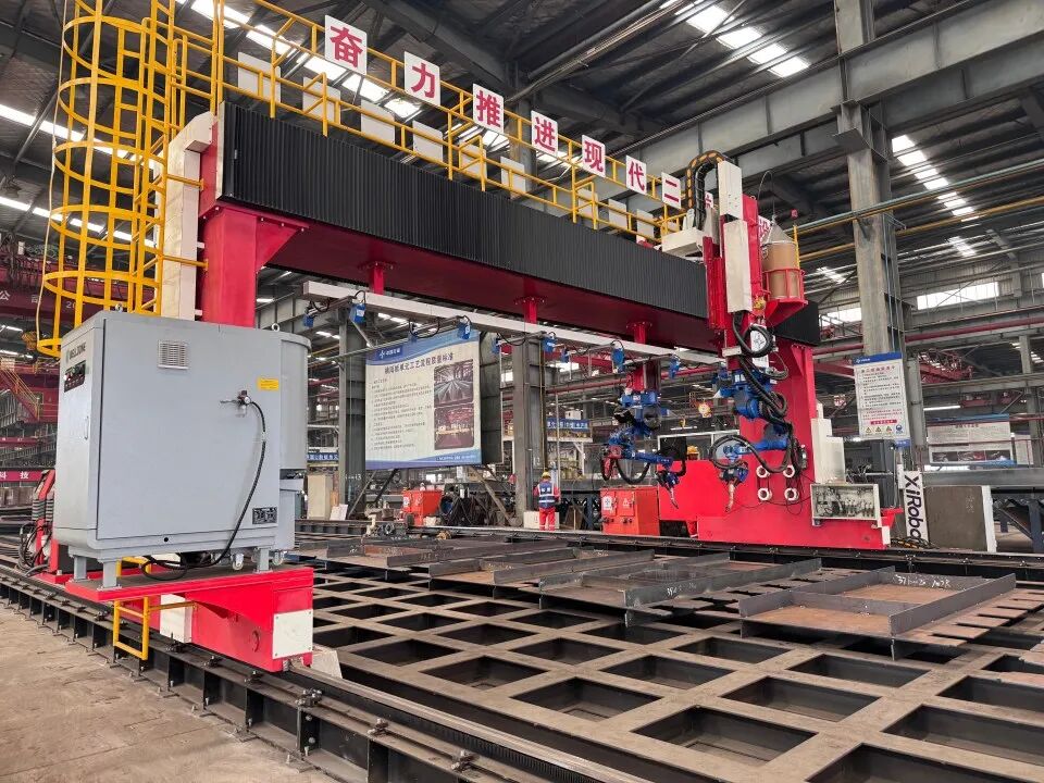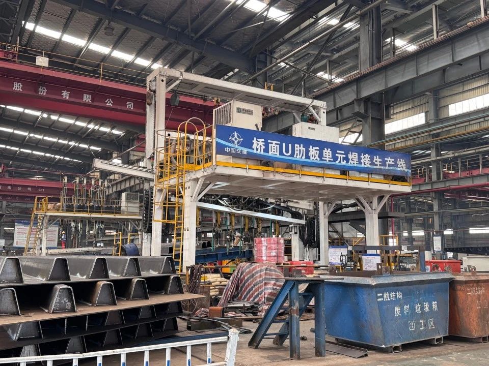 传统 U 肋板焊接需双焊枪同步作业,存在设备投入大、焊缝一致性差等问题。而在双柳生产基地,一条 U 肋板焊接生产线贯穿车间,单焊枪从钢板一侧伸入即可完成双面焊接。“就像用一支笔同时画两条线,全靠算法和机械臂配合。”尚傲翔解释,该技术已在 U 肋板焊接中应用,未来计划向更多场景推广。