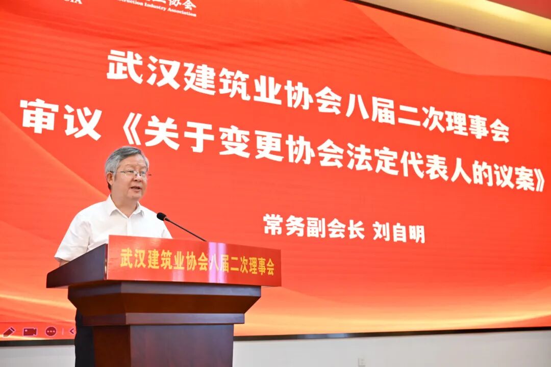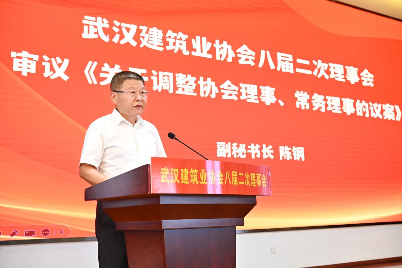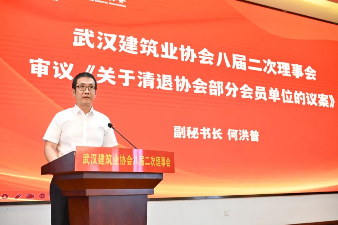 在人事与组织事项审议环节,会议审议并通过《关于变更协会法定代表人的议案》、《关于变更协会副会长的议案》、《关于清退协会部分会员单位的议案》、《关于调整协会理事、常务理事的议案》以及《关于召开武汉建筑业协会八届二次会员大会的议案》。