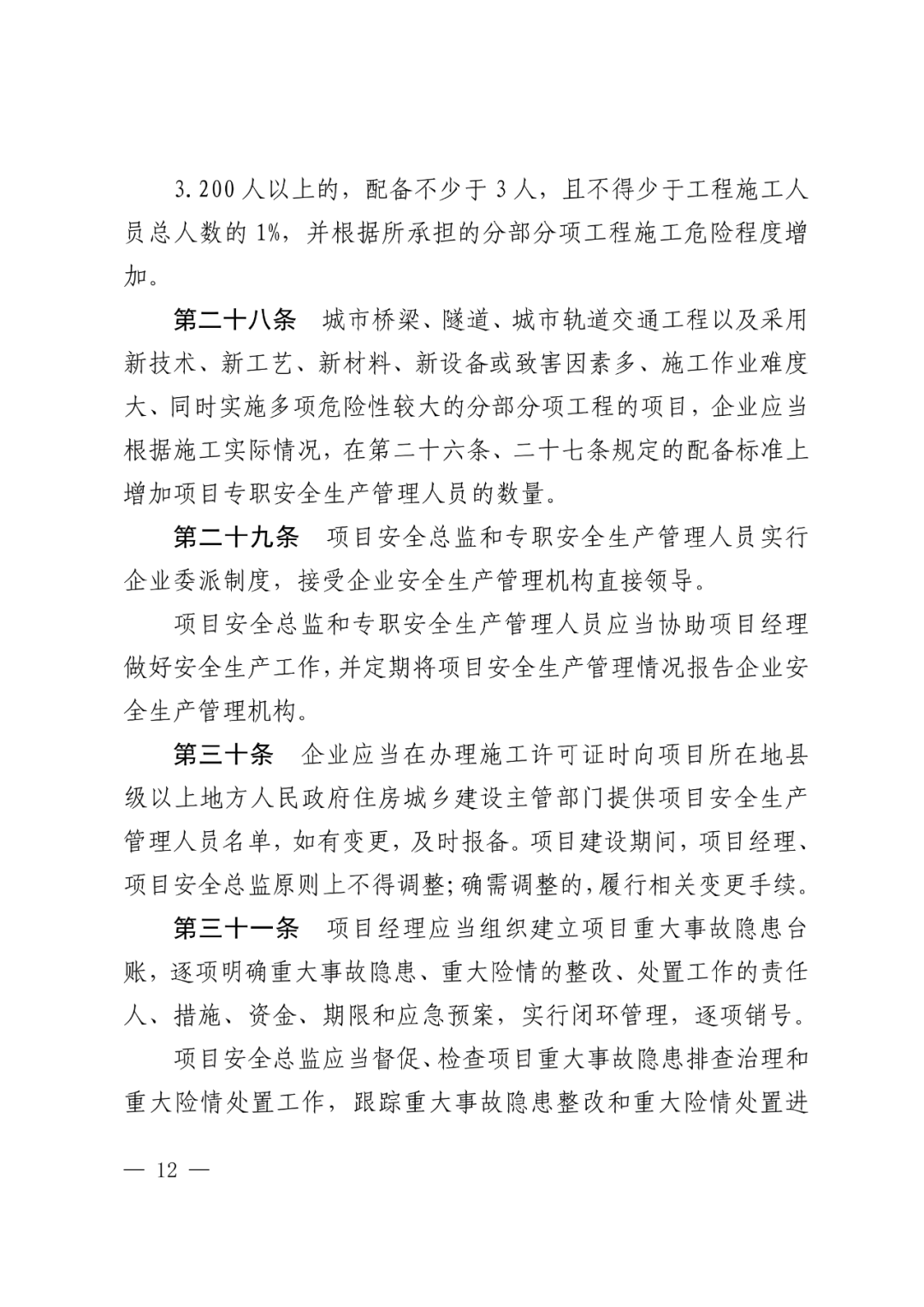 第二十一条明确建设规模符合3种条件之一的项目,应当配备安全总监,设置独立的安全生产管理机构。