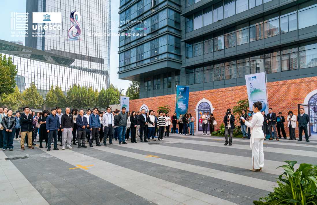 11月1日上午,第八届武汉设计双年展宣传日在充满老武汉风情的延庆里启动。现场多位领导嘉宾出席活动,他们分别是武汉市自然资源和城乡建设局总规划师何梅、蔡甸区政府副区长钟响、汉阳区政府办公室副主任龙钢以及武汉城投集团、武汉国际会展集团董事长乔宇芬。