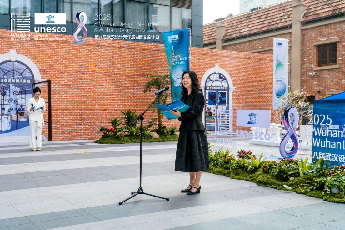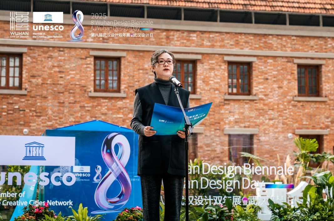 随后,武汉城投集团武汉国际会展集团董事长乔宇芬致辞。她表示,设计既是推动武汉发展的“引擎”,也是守护城市记忆的“匠人”。作为城市建设者与文明守护者,武汉城投集团始终坚信“好设计能连接历史与未来”,像延庆里这样的老建筑,正是通过“修旧如旧”的设计,从静止的“化石”变为可触摸的城市风景。未来将持续为“设计之都”建设提供支持,邀请设计师融入可持续思维,共筑美丽武汉。