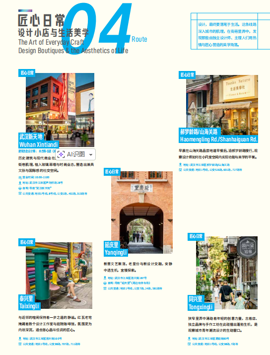 本次活动还同步发布“设计漫游” Designwalk 四大主题路线。将整座武汉变成了“流动的设计展厅”,串联起 20 多个设计地标,勾勒出城市的创意脉络。武汉设计漫游地图将同步在延庆里免费发放。