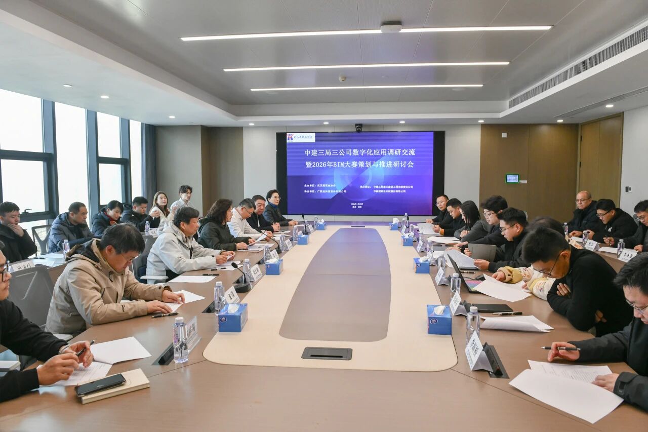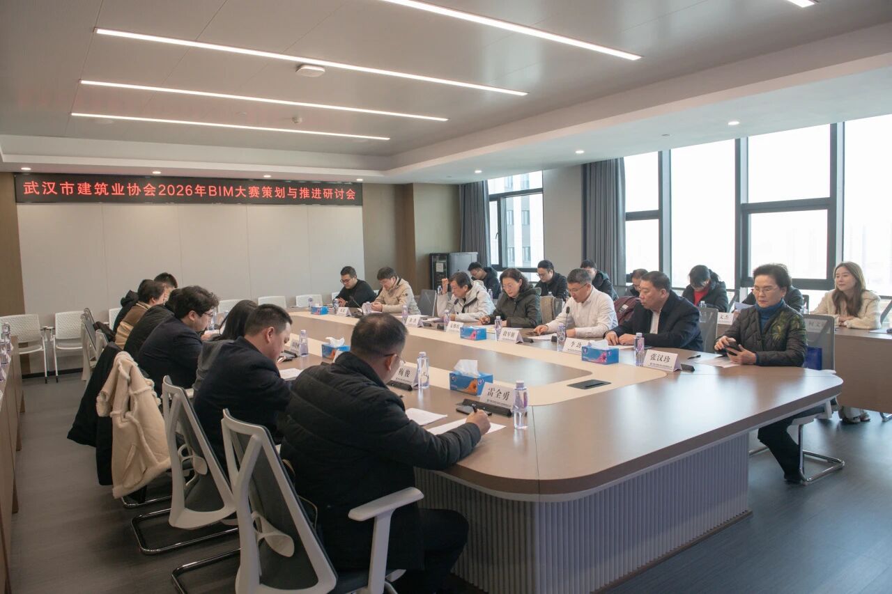 1月23日,由协会组织的2026年BIM大赛方案策划与推进研讨会暨数字化应用交流会中建三局三公司召开。 协会副秘书长安维红,总工委副主任徐洪,总联络员张汉珍,中建三局三公司副总工程师段军朝,科创事业部总经理李劲,BIM中心主任雷全勇,中南院新质生产力数字建筑技术中心副总工龙潇博士,以及来自长江设计院研发中心高蔚,中建三局总承包公司周晓帆,中信设计院刘祥明,市政工程中南院吴迪,中建八局华中公司张润东,中电光谷建筑设计院白红,中天建设集团李聪,广联达科技房雨珊,艾比蒙(武汉)信息公司李新桥等30余位专家参加会议。会议由安维红主持。 专家们参观中建三局三公司数字展厅,了解三局三公司发展理念、战略目标、业务选择、区域布局、组织架构、业务发展策略等发展历程,学习了三公司“雷霆三实·拼闯争先”企业文化精神。 中建三局三公司副总工程师段军朝致辞。 中建三局三公司BIM中心主任雷全勇作《基于Open BIM的广州白云国际机场T3航站楼智能建造》主题分享。 中南建筑设计院新质生产力发展中心数字建筑技术中心副总工龙潇博士作《“GiantAI 2.0 建筑创意方案辅助设计平台”》的主题分享 中建三局总承包公司智能建造院院长助理周晓帆介绍2026年BIM大赛方案策划情况。 参会专家围绕 2026 年大赛相关事宜提出多项建议,具体包括:大赛主题、赛制设计、组织安排及时间节点的优化,评分规则的细化完善,开展形式的创新方向;BIM大赛创新品牌的持续打造,参赛方案质量的提升路径;数据采集、智能装备的融合应用,BIM 技术从项目级向企业级的延伸落地;同时明确需坚持以项目实际应用为核心导向,进一步拓展“BIM+N”多元场景应用,强化AI技术在大赛中的创新实践等。 安维红详细介绍了武汉市自然资源和城乡建设局科技计划项目的总体部署与核心导向。为深入贯彻创新驱动发展战略,持续提升建设领域产业科技创新效能,全力助推建筑业新质生产力高质量发展,该科技计划项目明确了重点选题方向 —— 聚焦人工智能、低空经济、智能网联、碳汇、卫星遥感、深地、绿色低碳建筑、智能建造等前沿领域,紧扣新质生产力培育核心要求,重点围绕建设领域实际痛点难点,开展关键科技创新技术研发与产业发展战略研究,以科技赋能行业转型升级。 徐洪指出,近年来在国家“十四五”规划持续推动智能建造与新型建筑工业化发展的大背景下,BIM技术作为建筑业数字化转型的核心抓手,正深刻重塑行业设计、施工、运维全生命周期管理模式。 武汉建筑业协会自2017年起已连续成功举办九届建设工程BIM大赛,通过赛事平台积极推动BIM技术在本地建筑行业的普及应用,积累了扎实成果。 徐洪表示,今天的调研交流活动是本届大赛的重要组成部分,旨在汇聚行业精英力量,共同探讨智能建造产业发展规划,分享新技术、新产品与创新管理经验,促进产业链上下游深度融合联动,为推动智能建造产业高质量发展、助力建筑行业转型升级注入强劲动力。