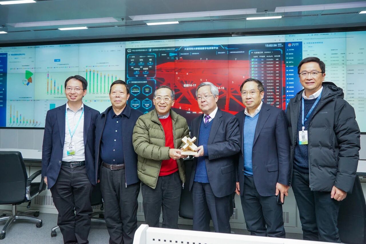 随后,考察团走进大桥局智能建造控制中心,近距离接触桥梁建造技术和智能化管理。大家认真聆听大跨度桥梁建设中的技术讲解,观摩智能装备、数字监控、精益管控等技术应用,感受企业在智能建造、绿色施工、科技创新领域的硬核实力。