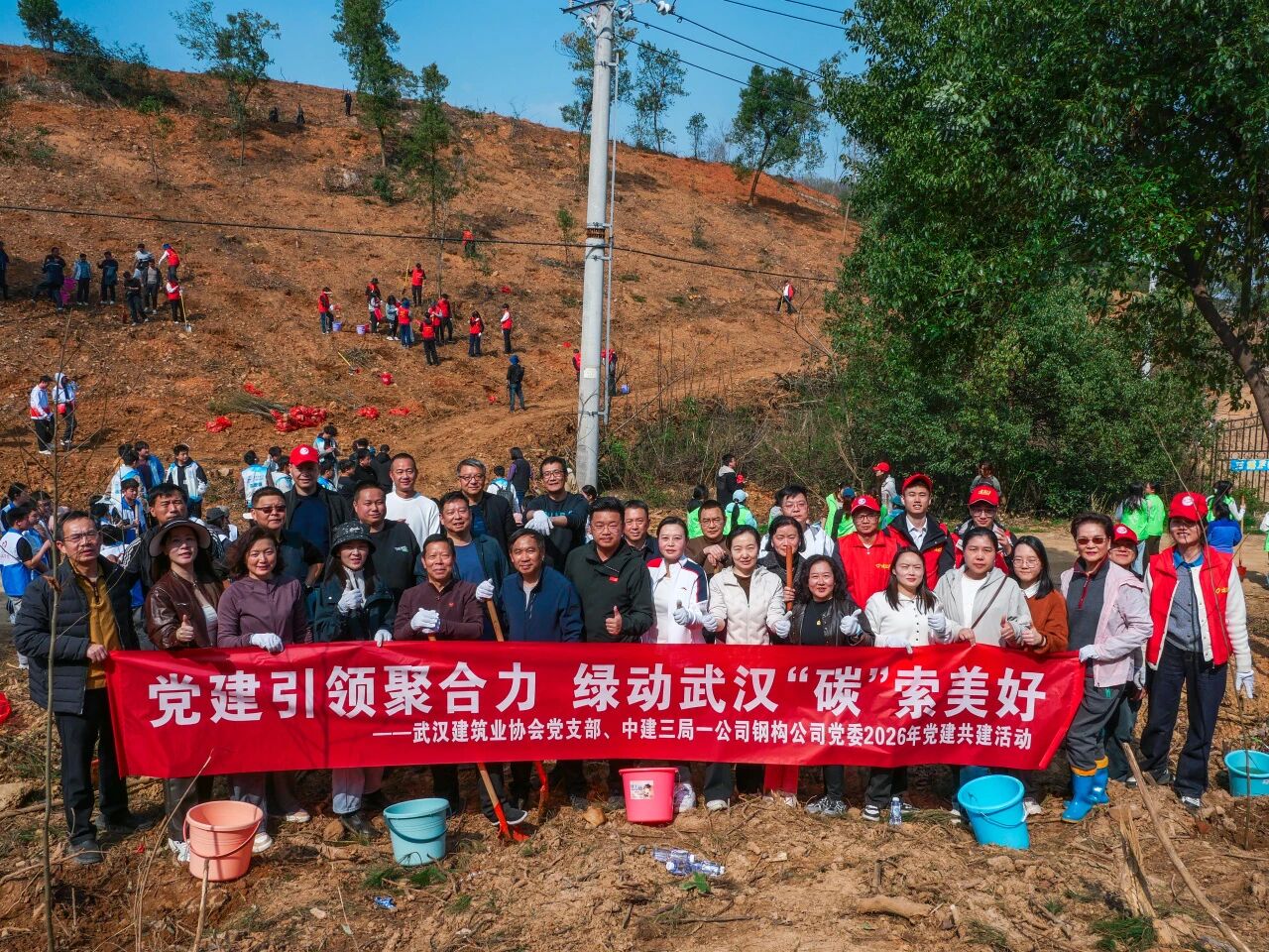 春风催新绿,植树正当时。在第48个植树节到来之际,为响应武汉市“绿动武汉‘碳’索美好”植树节主题,3月12日下午,武汉建筑业协会党支部与中建三局一公司钢构公司党委在蔡甸区嵩阳林场夹山周湾联合开展党建共建植树活动,30余名党员代表齐聚现场,以实际行动为江城添绿。 左右滑动查看更多 活动现场,党员代表们分组协作、干劲十足。 左右滑动查看更多 挥锹铲土、扶苗正树、踩土定植、提水浇灌,每一道工序都一丝不苟,在默契配合中种下一棵棵新苗,为林场增添了盎然生机。 此次活动既是一次生态文明实践,也是双党组织的党建联建探索,既增强了党员的生态环保意识,也增进了彼此交流,彰显了武汉建筑行业践行“双碳”、共建绿色江城的责任担当。